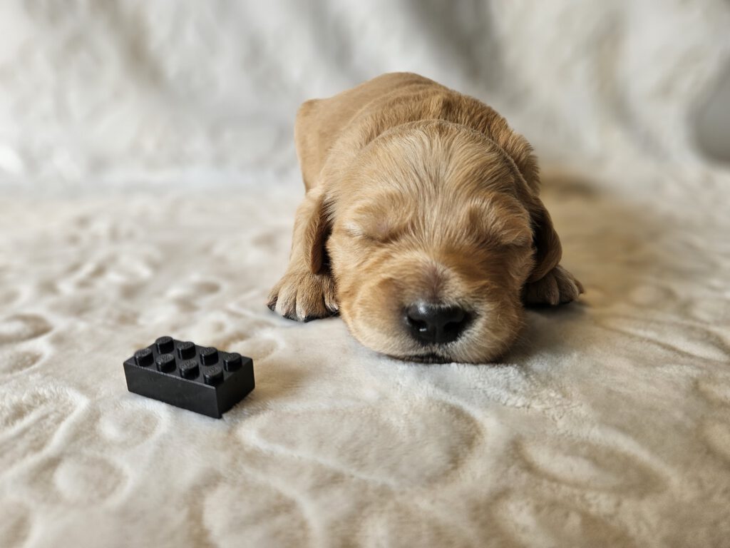 Die kleinen Racker sind sehr gut drauf. Sie spielen viel im Garten sowie im Haus und halten unsere Familie auf Trab. Es macht uns allen so viel Spaß, man kann sich gar nicht satt sehen an der B-Mannschaft. Das Bällebad haben wir erst am Sonntag aufgebaut, das finden sie mega. Wenn man Barfuß zu den Welpen geht, lernt man die kleinen Pyranhas erst richtig kennen 🙂